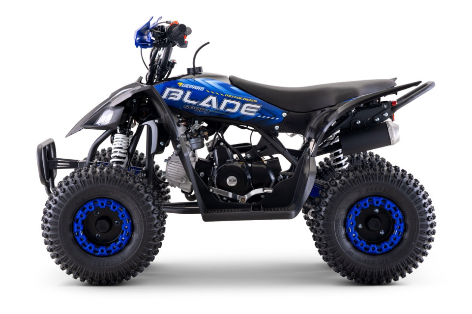 De Blade DLX 7 kinderquad met 125cc 4-takt motor is een quad welke extra verhoogd is uitgevoerd. Hierdoor heeft de quad meer beenruimte. De stoere look maakt dit een unieke verschijning. Deze quad is tevens standaard voorzien van een sterke stootbumper. De quad is uitgerust met een snelheidsbegrenzer als extra veiligheidsoptie en behaalt een maximale snelheid van 65km/h