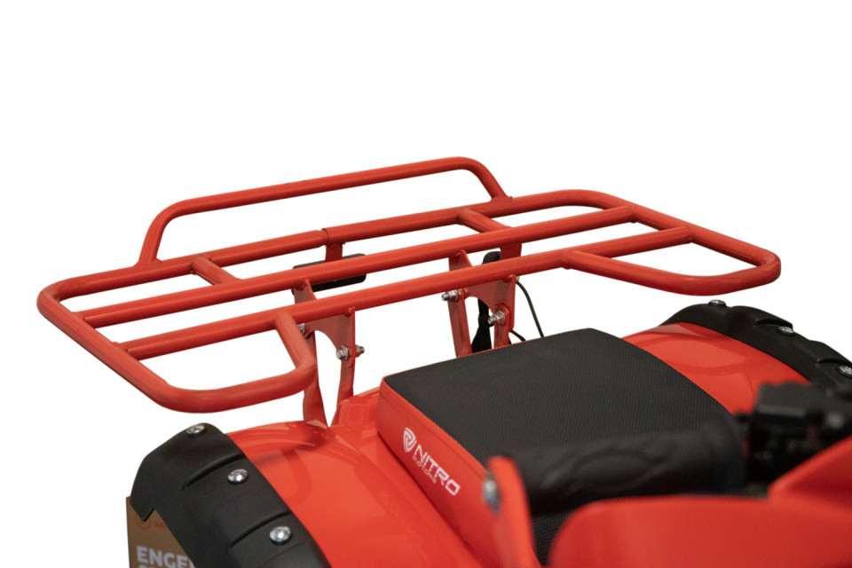 Deze robuuste kinderquad heeft een stoere look en is voorzien bagagerekken en een grote stootbeugel.