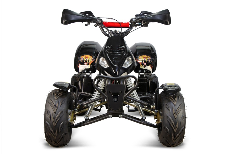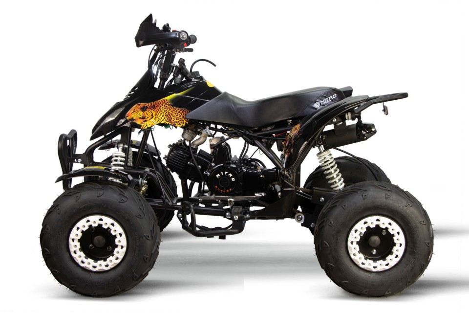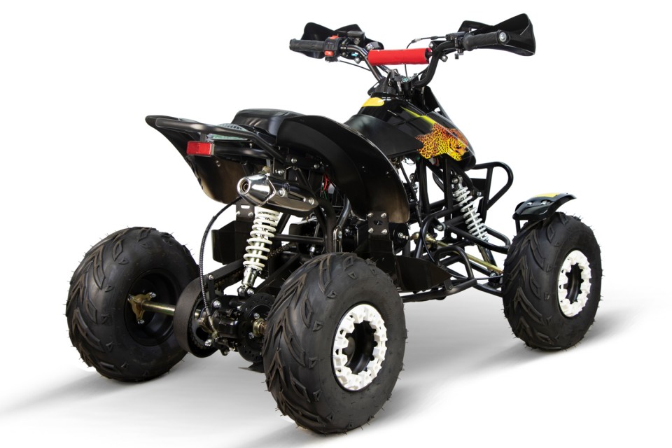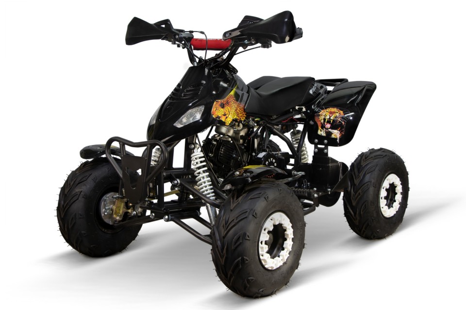 De Leopard kinderquad met 125cc 4-takt motor is één van de meest sportieve kinderquads in zijn klasse. Daarnaast is deze quad dankzij de coole Leopard stickers en gave kappenontwerp een unieke verschijning. De stootbumper aan de voorkant en de dubbele uitlaat maken deze quad helemaal af. Deze midiquad is leverbaar in verschillende mooie kleurcombinaties.