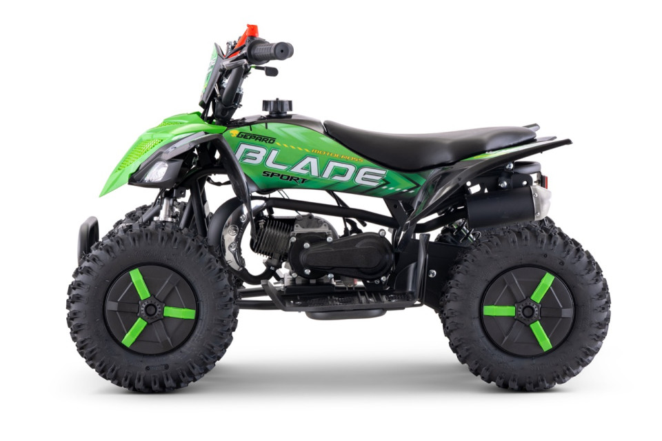 De Blade kinderquad met 49cc 2-takt motor is een quad welke extra hoog is uitgevoerd. De stoere look maakt dit een unieke verschijning.