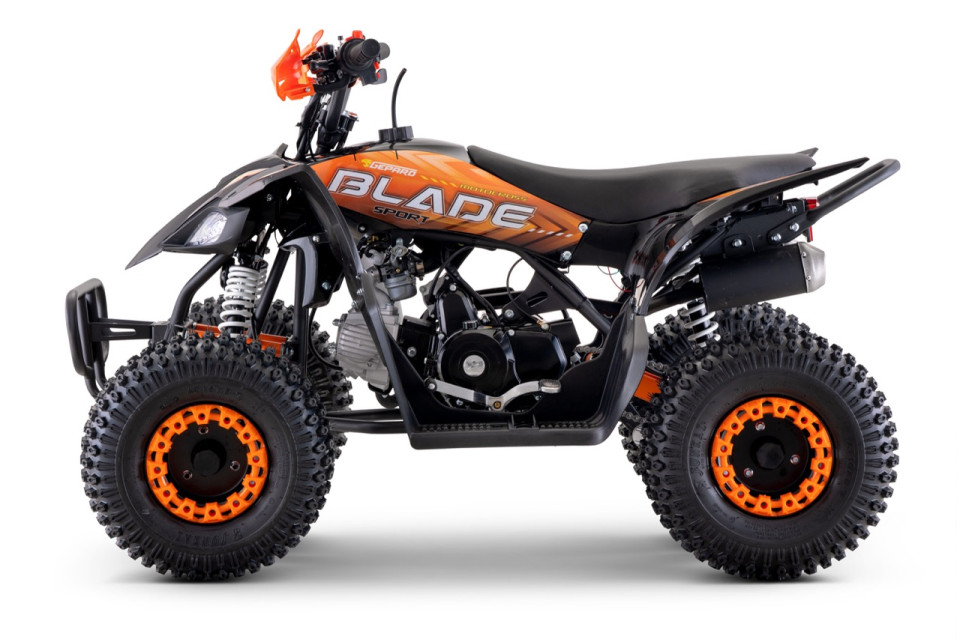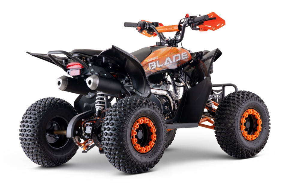 De Blade DLX 7 kinderquad met 125cc 4-takt motor is een quad welke extra verhoogd is uitgevoerd. Hierdoor heeft de quad meer beenruimte. De stoere look maakt dit een unieke verschijning. Deze quad is tevens standaard voorzien van een sterke stootbumper. De quad is uitgerust met een snelheidsbegrenzer als extra veiligheidsoptie en behaalt een maximale snelheid van 65km/h