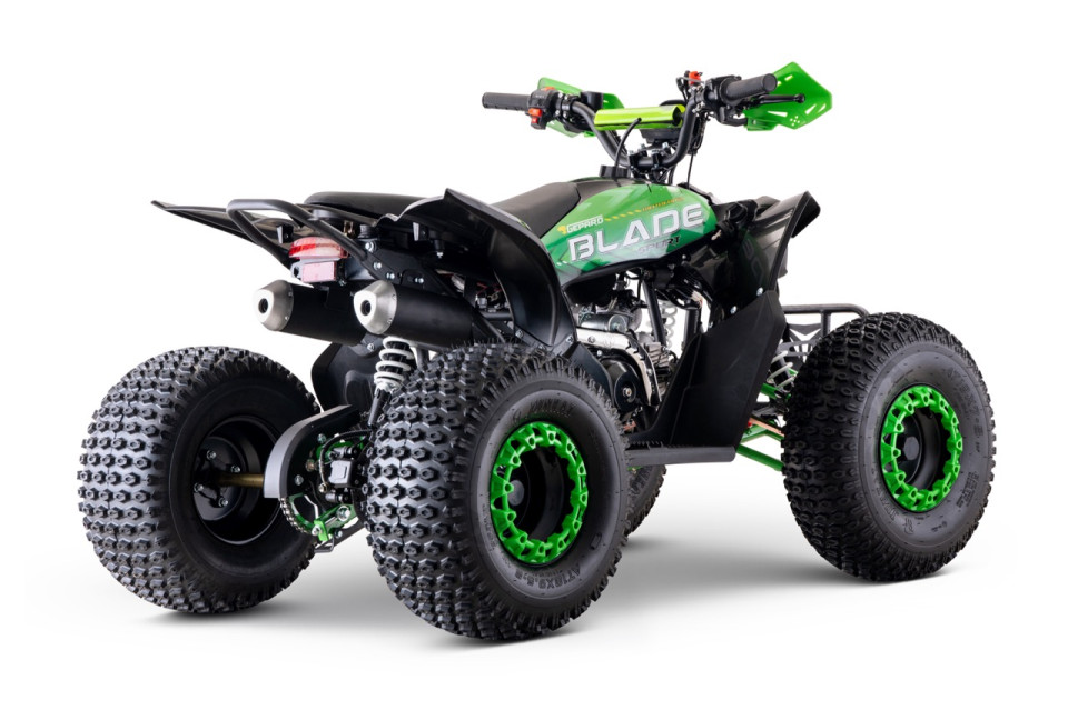 De Blade RS8 kinderquad met 125cc 4-takt motor is een quad welke extra verhoogd is uitgevoerd. Hierdoor heeft de quad meer beenruimte. De stoere look maakt dit een unieke verschijning. Deze quad is tevens standaard voorzien van een sterke stootbumper. De quad is uitgerust met een snelheidsbegrenzer als extra veiligheidsoptie en behaalt een maximale snelheid van 65km/h