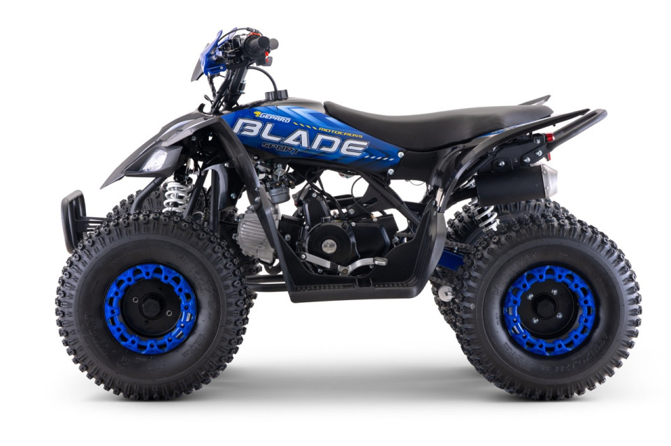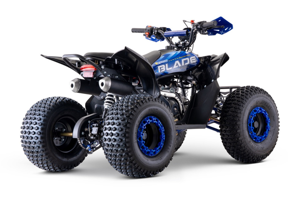 De Blade RS8 kinderquad met 125cc 4-takt motor is een quad welke extra verhoogd is uitgevoerd. Hierdoor heeft de quad meer beenruimte. De stoere look maakt dit een unieke verschijning. Deze quad is tevens standaard voorzien van een sterke stootbumper. De quad is uitgerust met een snelheidsbegrenzer als extra veiligheidsoptie en behaalt een maximale snelheid van 65km/h