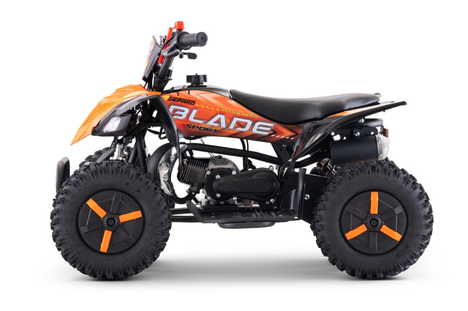 De Blade kinderquad met 49cc 2-takt motor is een quad welke extra hoog is uitgevoerd. De stoere look maakt dit een unieke verschijning.