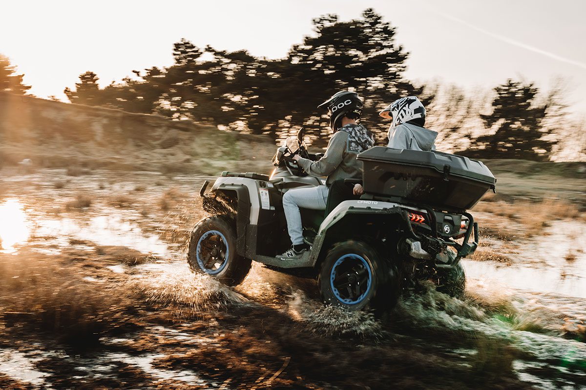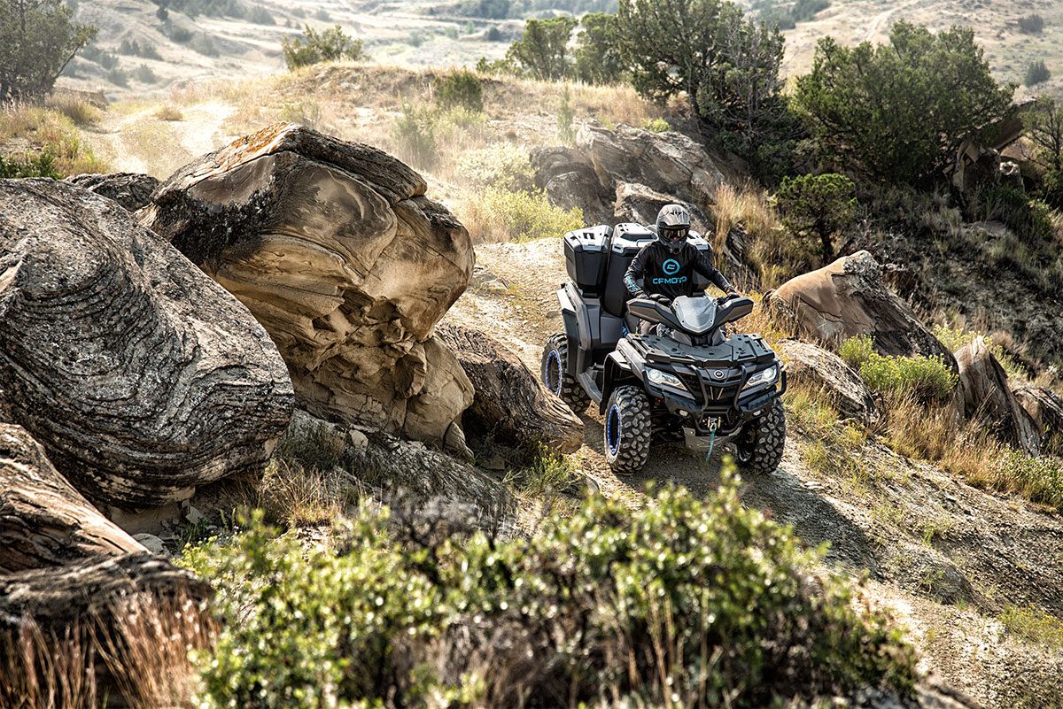 Stap op de quad en begin je avontuur! De CFORCE 1000 OVERLAND voorziet in al je behoeften. Vrijheid om de wereld te verkennen betekent nu ook de vrijheid om al je spullen mee te nemen. Dankzij zijn ruime opbergmogelijkheden en zitplaats voor een bijrijder, kun je nu alles meenemen wat je nodig hebt voor een middag, een hele dag, of zelfs een heel weekend vol plezier. Met zijn indrukwekkende capaciteit en op maat gemaakte off-road bescherming, stelt de CFORCE 1000 OVERLAND je in staat om je volledig te concentreren op het avontuur dat voor je ligt, terwijl je geniet van ultieme vrijheid.