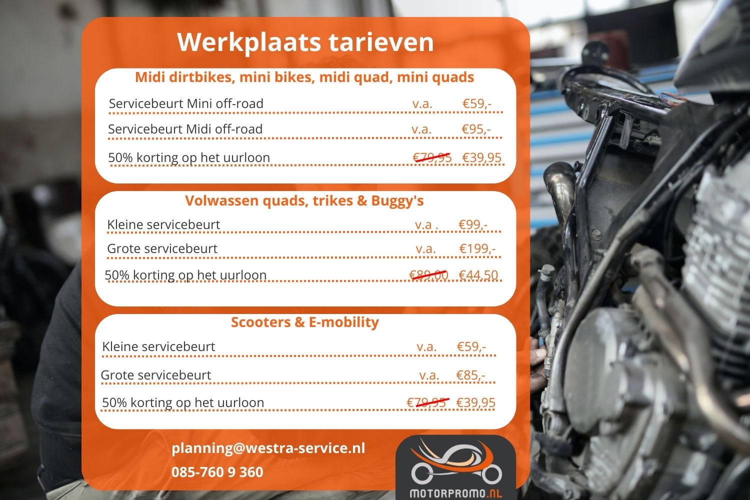 Onderhoudstarieven (minibikes, dirtbikes, kinderquads, miniquads):